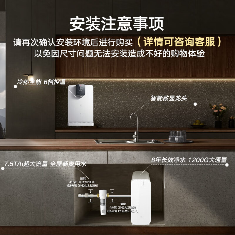 米家【净水+管线机+前置】净水器1200G Pro双核+管线机+前置过滤器 小米净水器套装C价格:3647.00元!