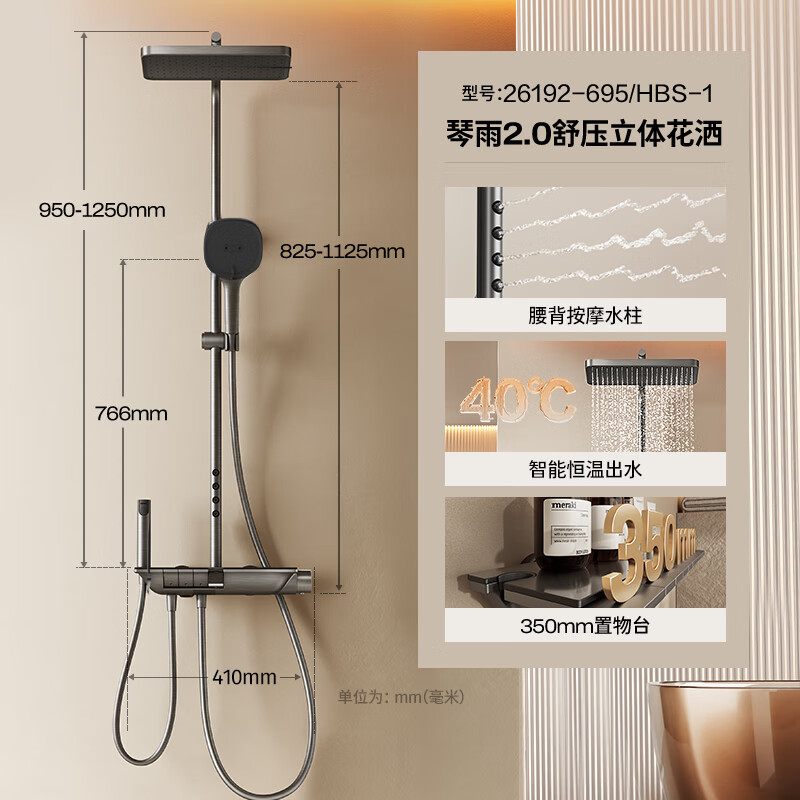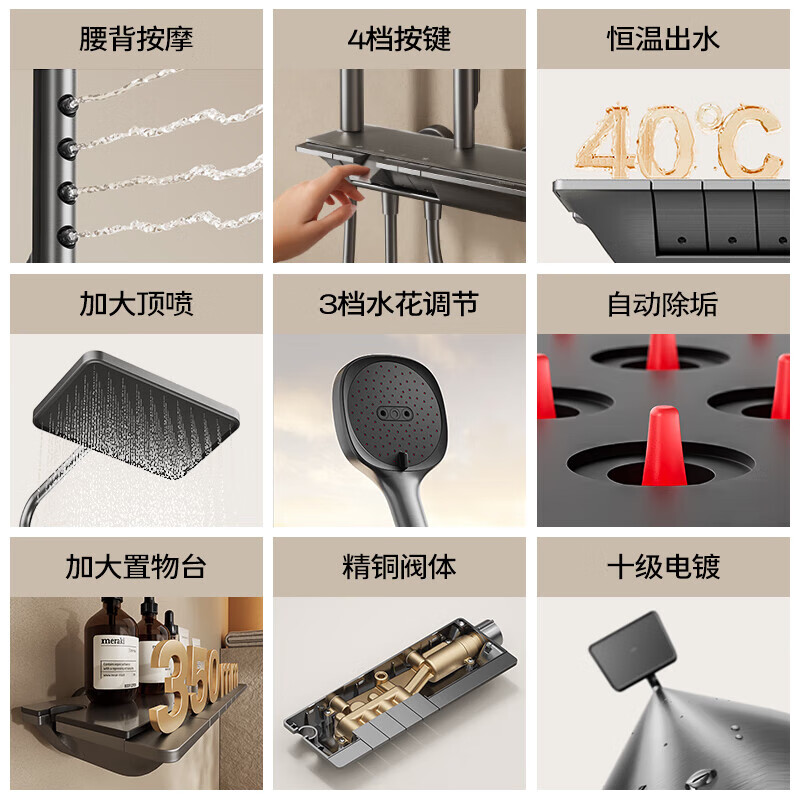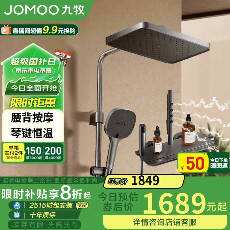 九牧(JOMOO)花洒淋浴套装枪灰钢琴键置物除垢恒温SPA淋浴器26192-695/HBS-1价格:1849.00元!