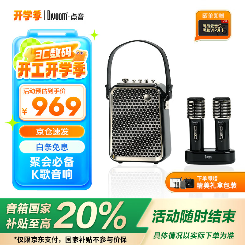 Divoom点音 K歌蓝牙音箱家庭KTV音响套装带双麦克风 户外便携无线唱歌话筒音响一体式节日礼物 东方青鸾价格:1089.00元!