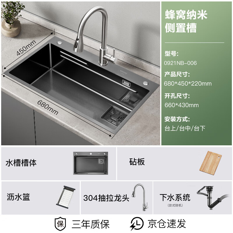 华帝(VATTI)厨房水槽大单槽洗菜盆一体盆 水槽304不锈钢蜂窝纳米-以旧换新价格:729.00元!