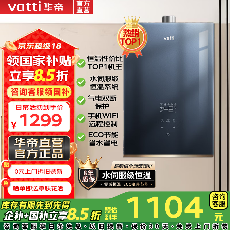 华帝(VATTI)【家电补贴】热水器官方i12151-16L一级静音水伺服级恒温气电保护WIFI智控恒温节能燃气热水器 16L 恒温热水器TOP榜单热品-工厂速发 i12151【咨询客服领取神券】价格:1299.00元!
