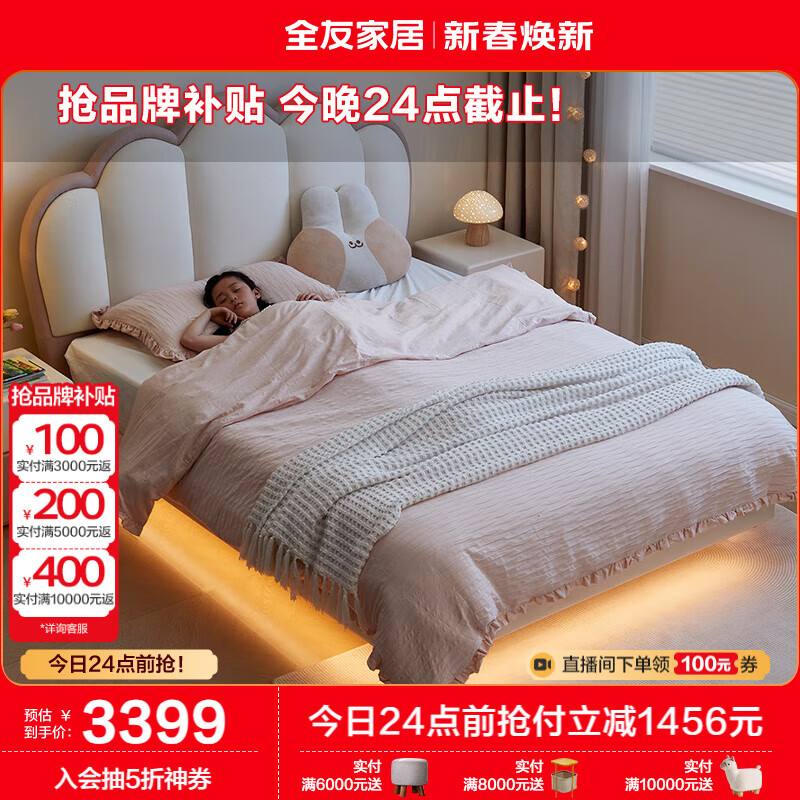 全友家居 现代简约悬浮软包皮艺床卧室公主床1.5米青少年单人床116091价格:4855.71元!
