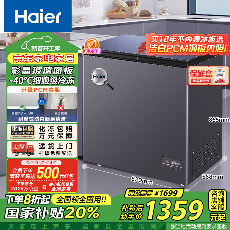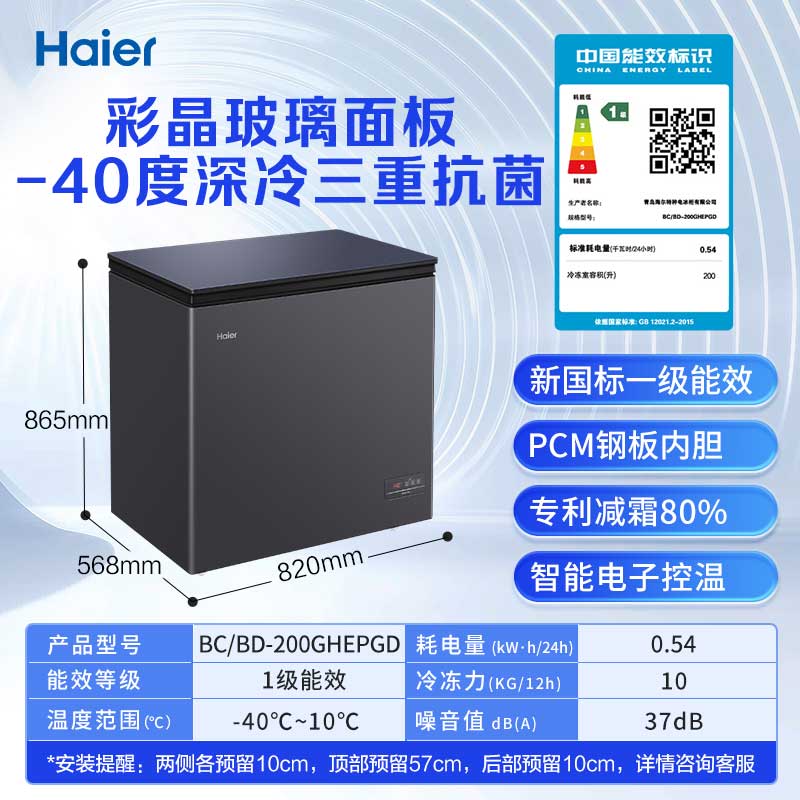 海尔(Haier)冰柜家用京东自营200升小冰箱小型冷柜-40度超低速冻智能电子温控BC/BD-200GHEPGD家电补贴20%价格:1699.00元!