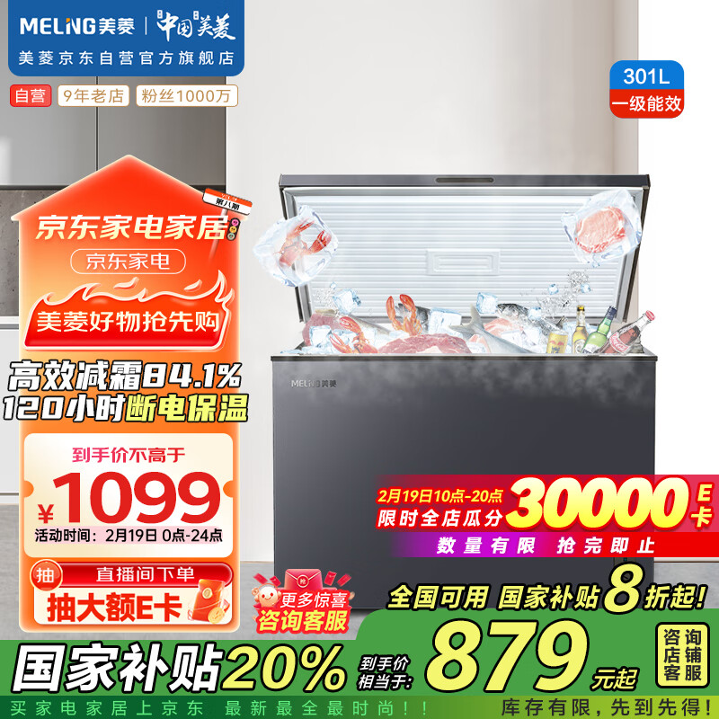 美菱(MeiLing)301升减霜84.1%大容量家用冰柜冷藏冷冻转换冷柜雪糕冰柜一级能效卧式冰箱BC/BD-301DT灰补贴价格:1099.00元!