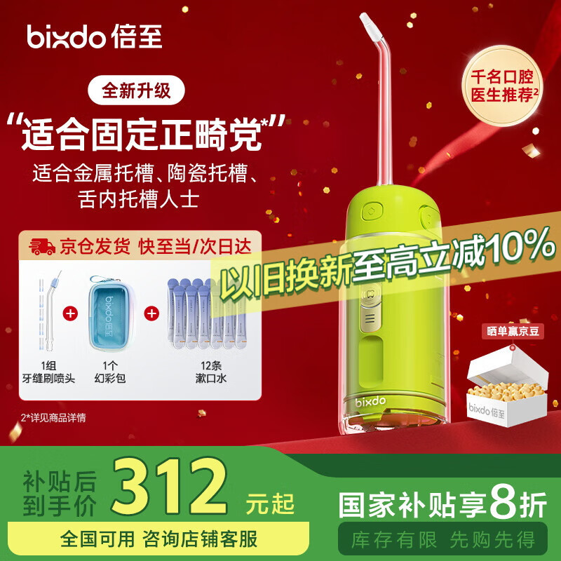 倍至(bixdo)冲牙器胶囊三代洗牙器水牙线美牙预防牙结石正畸伸缩便携式儿童洁牙器美白 生日三八节女神礼物价格:389.00元!