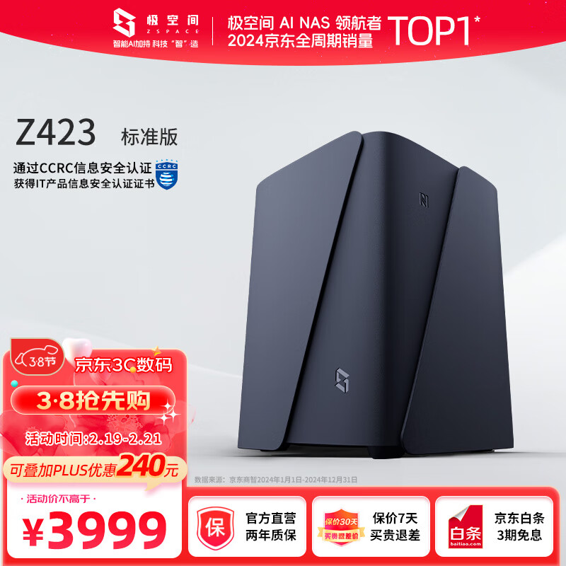 极空间私有云Z423标准版 6核四盘位nas网络存储AI相册备份文件家用硬盘服务器手机平板扩容适用iPhone16价格:3999.00元!