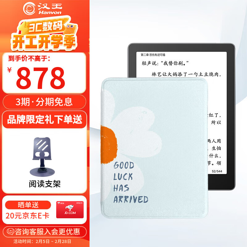 汉王(Hanvon)6英寸电子书阅读器 墨水屏电纸书 智能阅读本电子纸 冰山灰4+32G款+幸运花保护套.套装价格:868.00元!