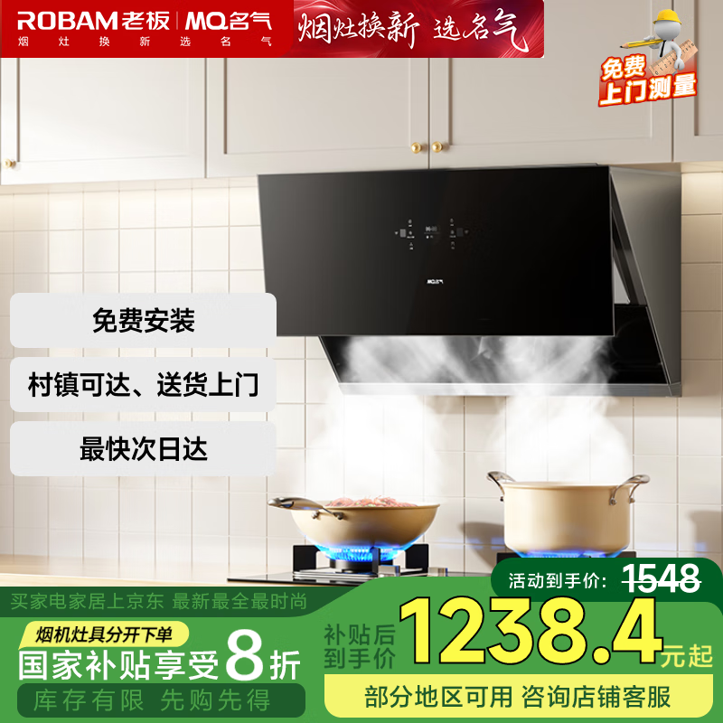 名气(MQ) 抽油烟机自适应灶具23大吸力家用侧吸烟灶套装天然气2570A+6312BT价格:1548.00元!