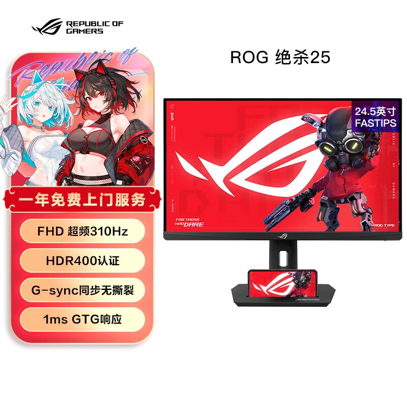 华硕ROG XG259CMS绝杀25 24.5英寸240Hz显示器超频310Hz HDR400旋转升降G-sync同步无撕裂 1ms灰阶响应价格:1999.00元!