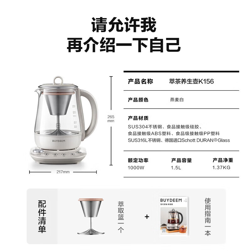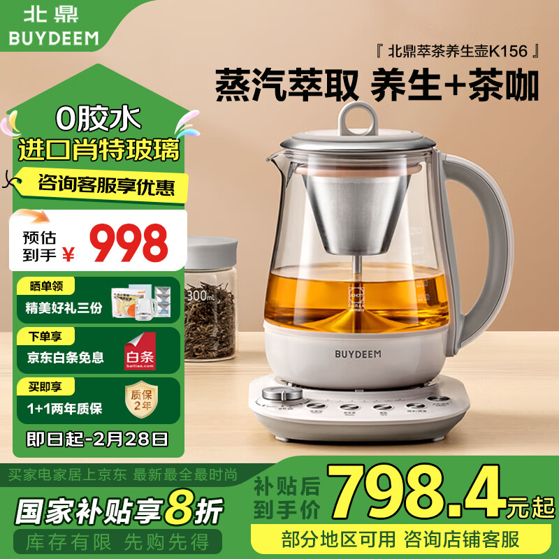 北鼎(Buydeem)【无胶水】养生壶煮茶器萃取壶全自动恒温烧水壶家用电热水壶煮茶壶办公大容量K156【补贴】价格:998.00元!