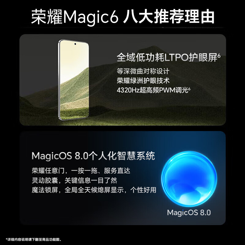 荣耀Magic6 单反级荣耀鹰眼相机 荣耀巨犀玻璃 第二代青海湖电池 16+512 海湖青 5G手机【赠话费券】价格:3699.00元!
