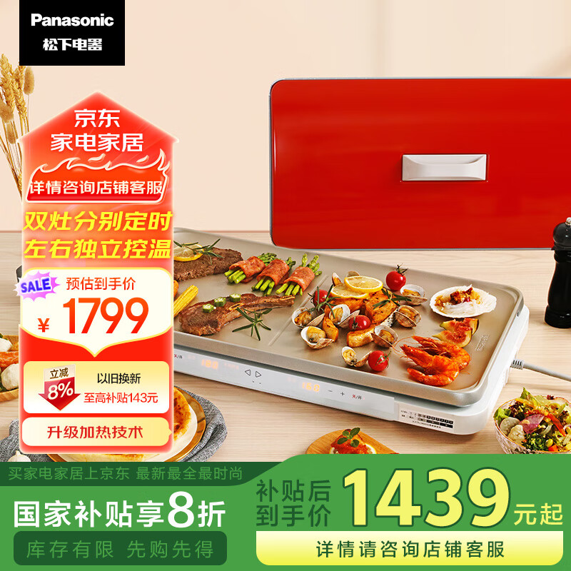 松下(Panasonic)【补贴】聚嗨盘 多功能料理锅 火锅电烤盘 家用烧烤一体 分区料理 不挑锅具 红色 NF-M1-R价格:1799.00元!