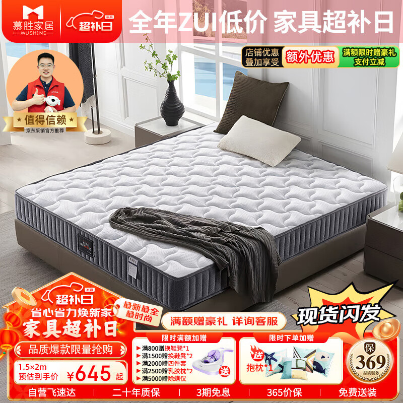 慕胜弹簧床垫席梦思1.5x2米1.8x2米偏硬椰棕床垫子品牌前十名20cm厚价格:987.85元!