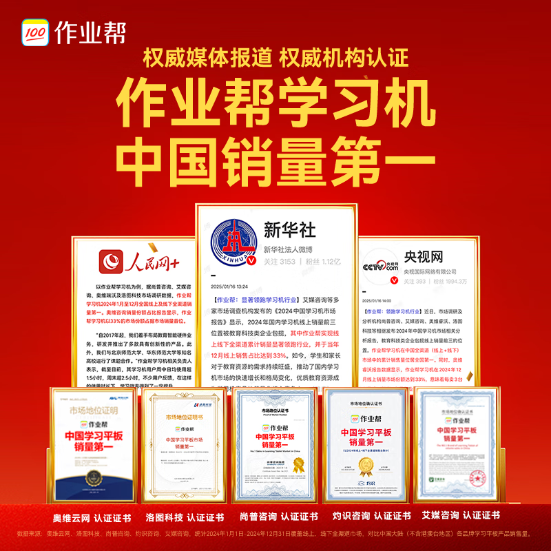作业帮AI学习机T20Pro+学习平板小学到高中全科作业辅导精准学 赠80万元学习资源 家教机12.7''8+4+256G价格:3299.00元!