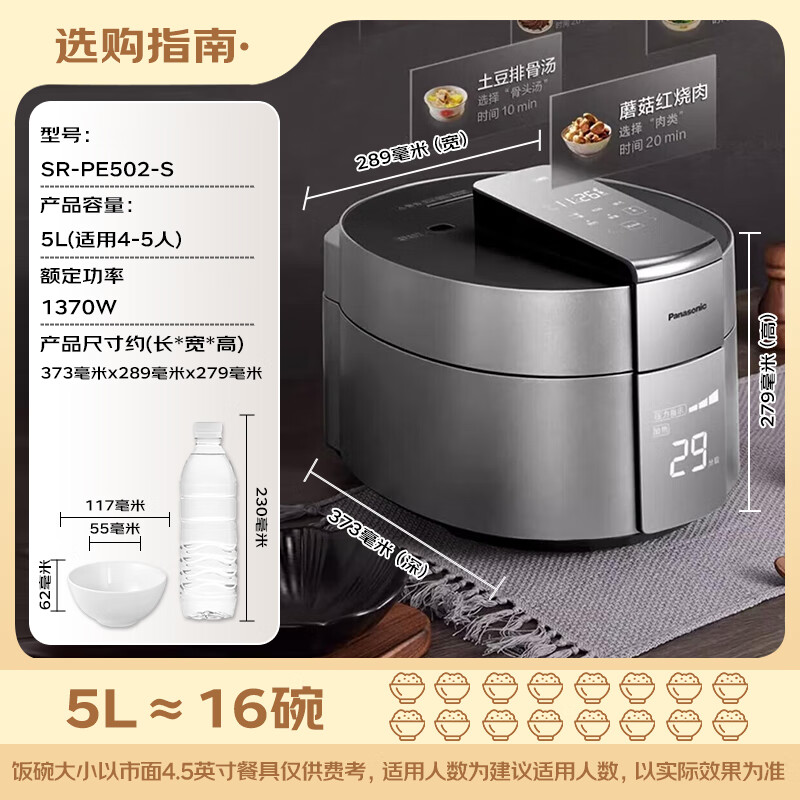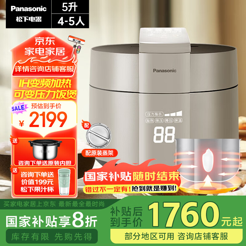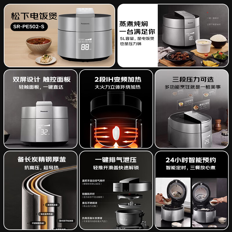松下(Panasonic)饭煲煲家用4-5人IH电饭煲多功能三段电电饭锅智能预约煮饭锅备长炭内胆5升大容量SR-PE502-S价格:2199.00元!