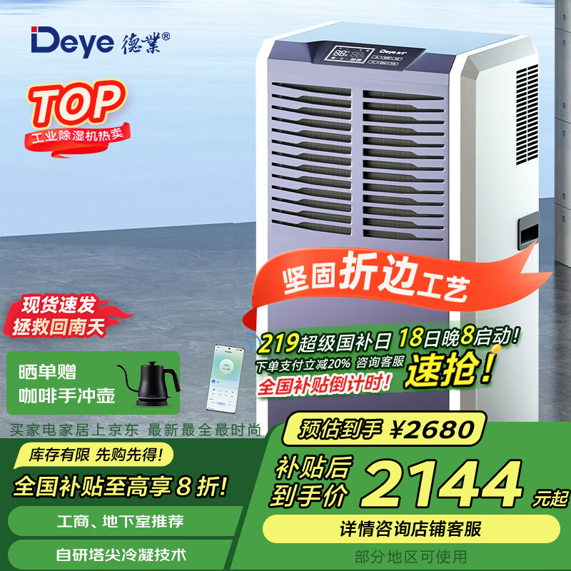 德业(Deye)工业除湿机/抽湿机 适用300平方米 别墅地下室工业商用仓库车间大功率除湿器DY-8138C价格:2680.00元!