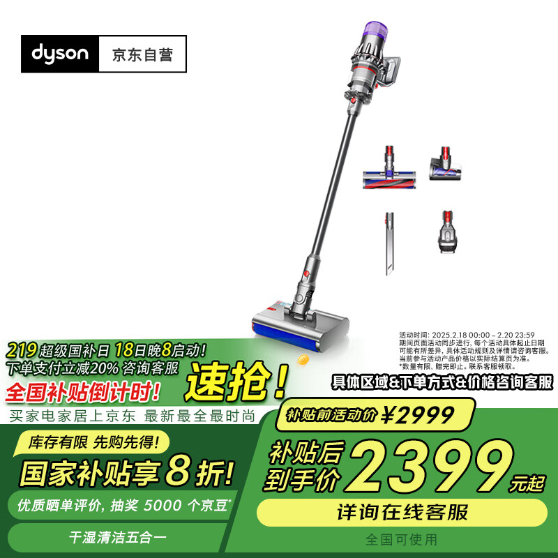 戴森(DYSON)V10n Digital Slim Nautik 轻量洗地吸尘器 无线家用除螨宠物 吸拖一体干湿两用洗地机吸尘器价格:2999.00元!