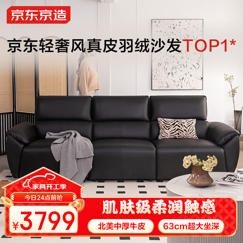 京东京造家居信封真皮沙发 轻奢客厅小户型头层牛皮钢琴键3.1m黑价格:4199.00元!