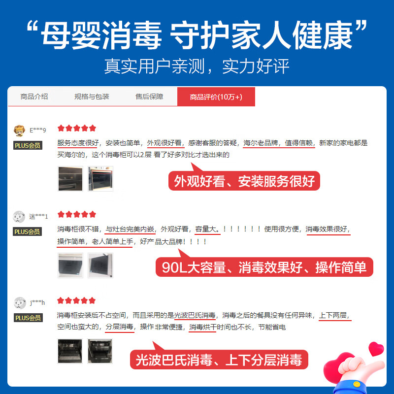 2、很好,很重的消毒柜,喜欢海尔这种消毒方式就买了,给个赞,希望质量好一点,不错不错,以前就用过海尔的产品,现在觉得不错又买了海尔的!