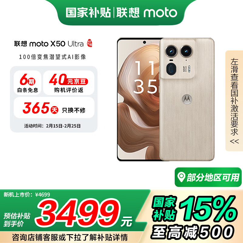 摩托罗拉 联想moto X50 Ultra 100倍潜望超级变焦 一体化机身 125W疾速闪充 5GAI手机 16+1TB 香柏木价格:3999.00元!