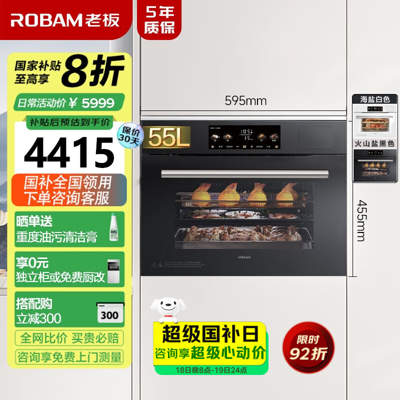 老板(Robam)盐系C90D-G1 火山盐黑 电烤箱 家用嵌入式蒸烤箱一体机以旧换新家电国补政府补贴 55L搪瓷自清洁价格:5999.00元!