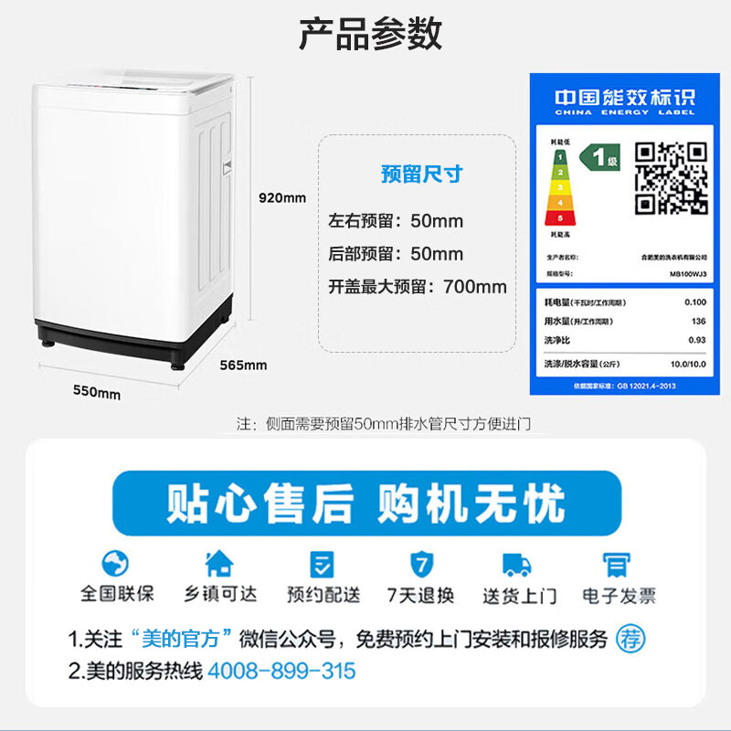 美的MB100WJ3配置参数: