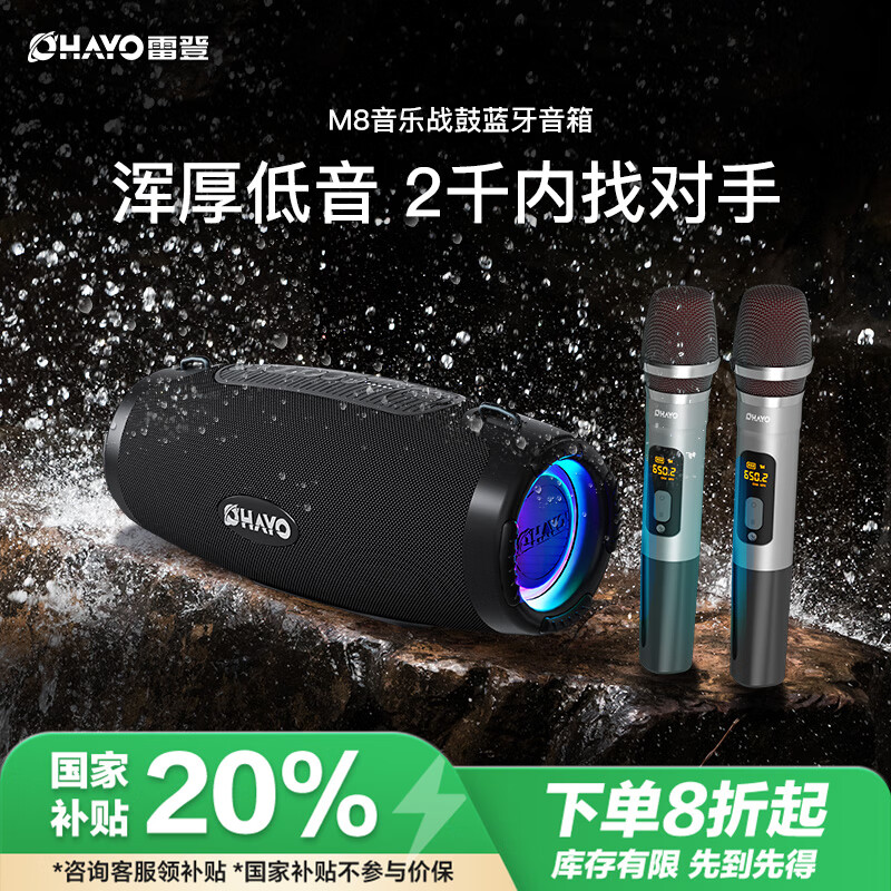 雷登(OHAYO)M8户外K歌音响100W蓝牙音箱声卡一体机大功率三喇叭双振膜立体声重低音炮混响广场舞直播送双麦价格:598.00元!