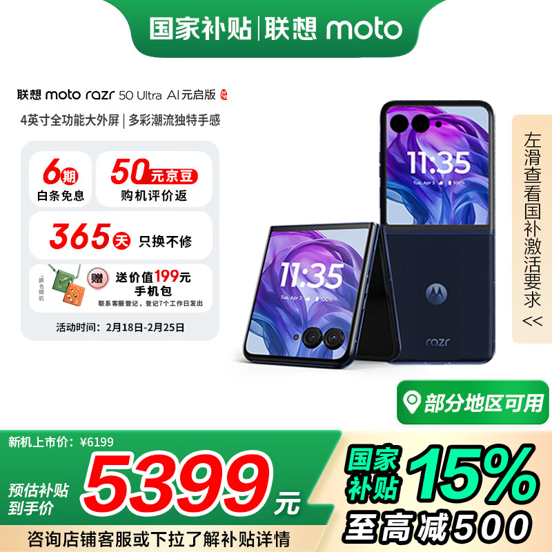 摩托罗拉 联想moto razr 50 Ultra 4英寸全功能大外屏 第5代折叠屏 悬停自由拍 5GAI手机 12+512GB复古丹宁价格:5899.00元!