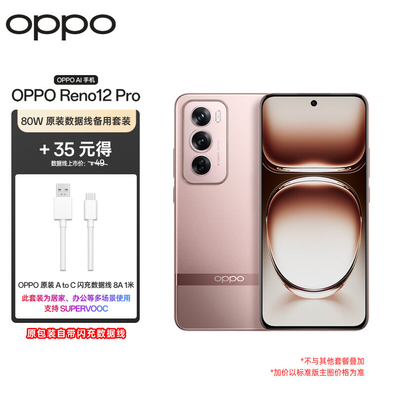 OPPO Reno12 Pro 16GB+256GB香槟金 超美小直屏 天玑9200+星速版旗舰芯手机【80W原装数据线备用套装】价格:3534.00元!