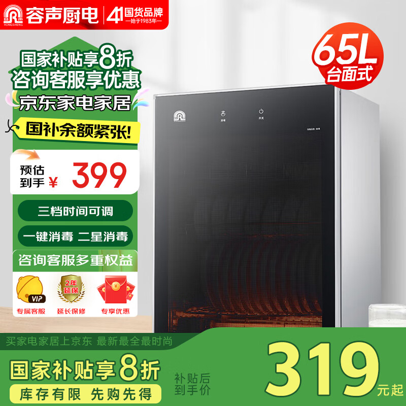 容声(RONGSHENG)消毒柜家用 立式消毒碗柜 小型消毒柜 三层65L国标二星消毒65-RQ230(A)价格:399.00元!