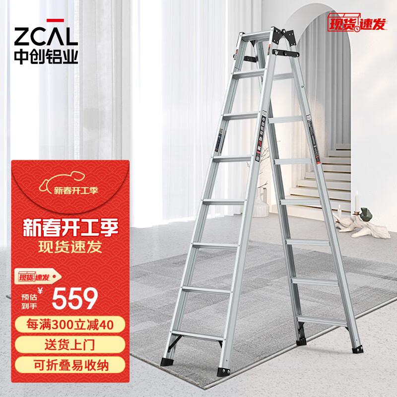 中创家用户外/工程梯 加厚铝合金人字梯2m多功能可折叠八步梯 TCL-08价格:599.00元!