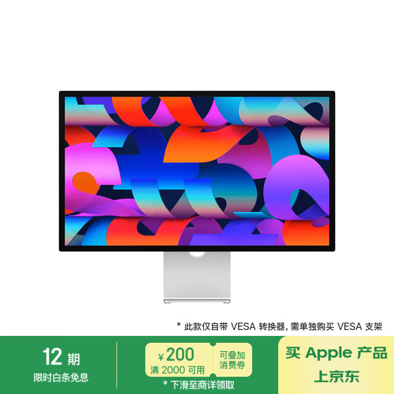 Apple/苹果 Studio Display 27英寸5K视网膜显示器-纳米纹理玻璃配VESA支架转换器 家用办公显示器价格:13499.00元!