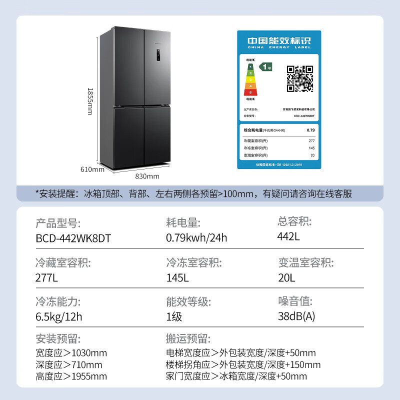 新飞BCD-442WK8DT配置参数: