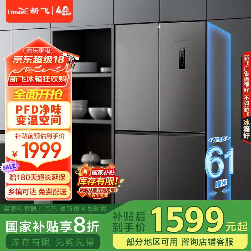 新飞(Frestec)442升超薄十字四门家用电冰箱一级变频风冷无霜PFD净味电脑控温补贴BCD-442WK8DT价格:1999.00元!