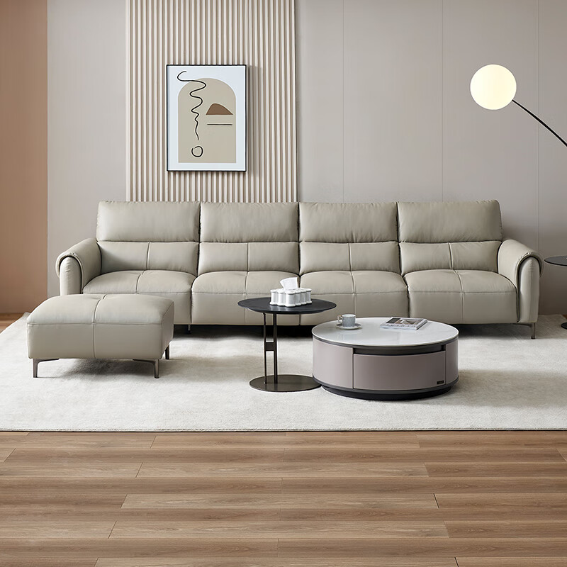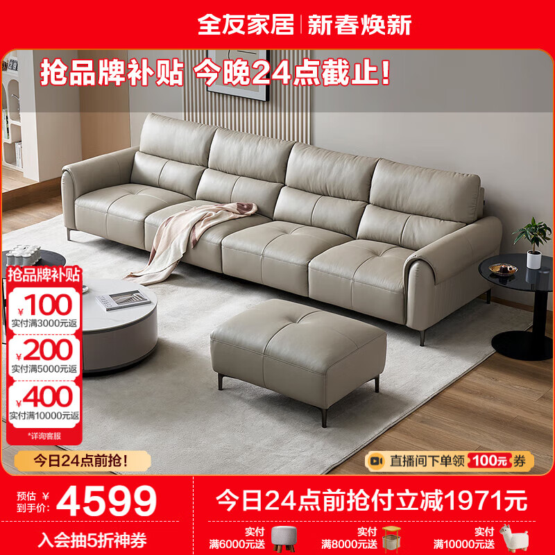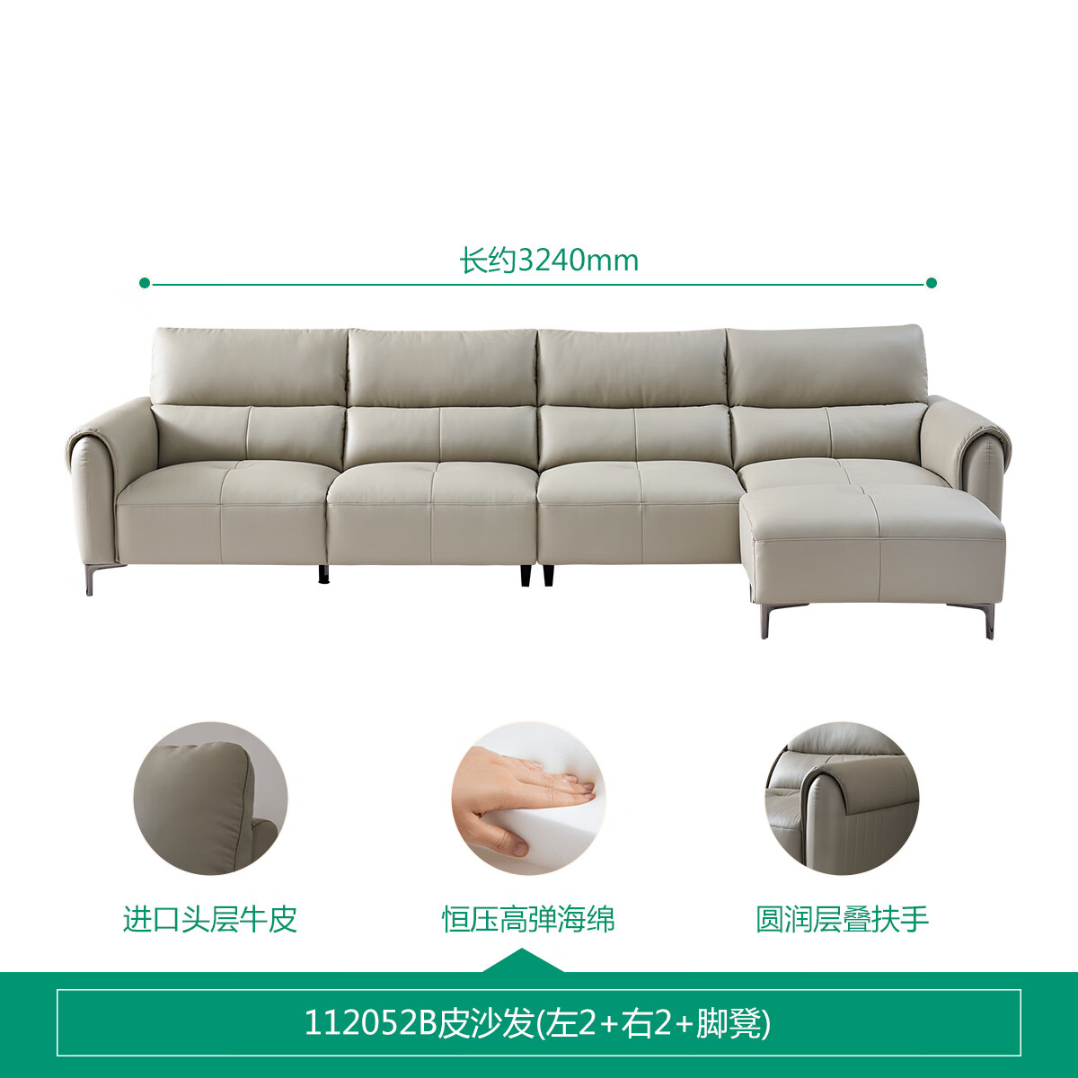 全友家居头层牛皮真皮沙发现代简约客厅家用四人位贵妃沙发家具112052价格:6570.00元!