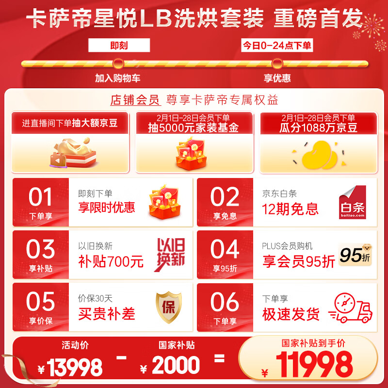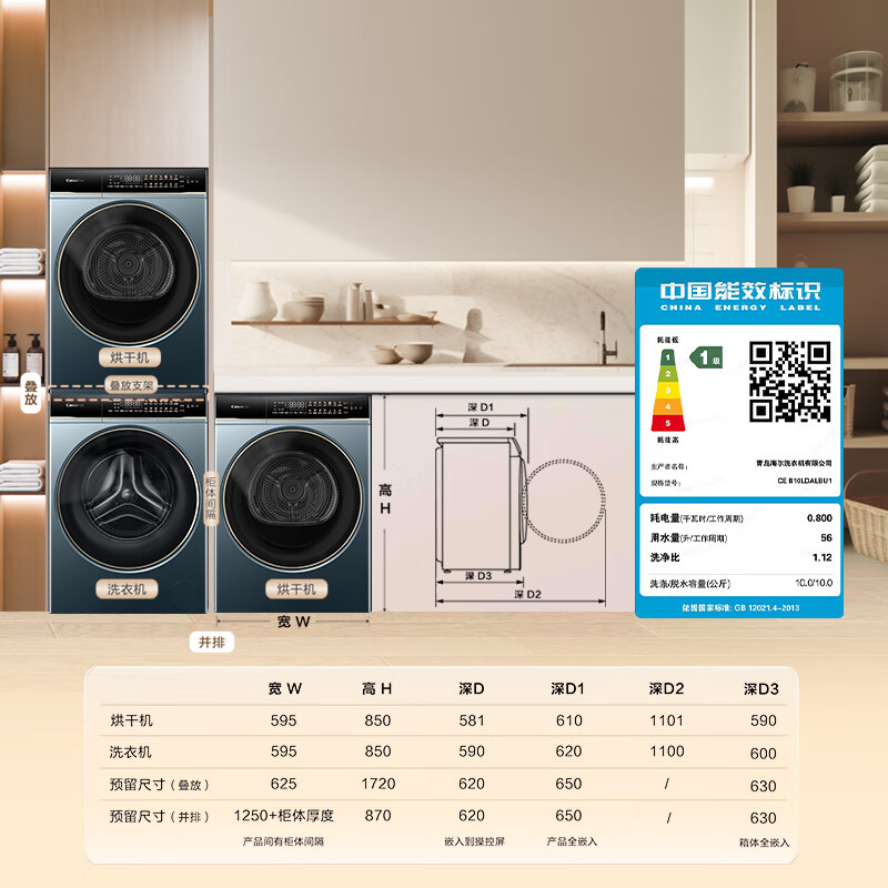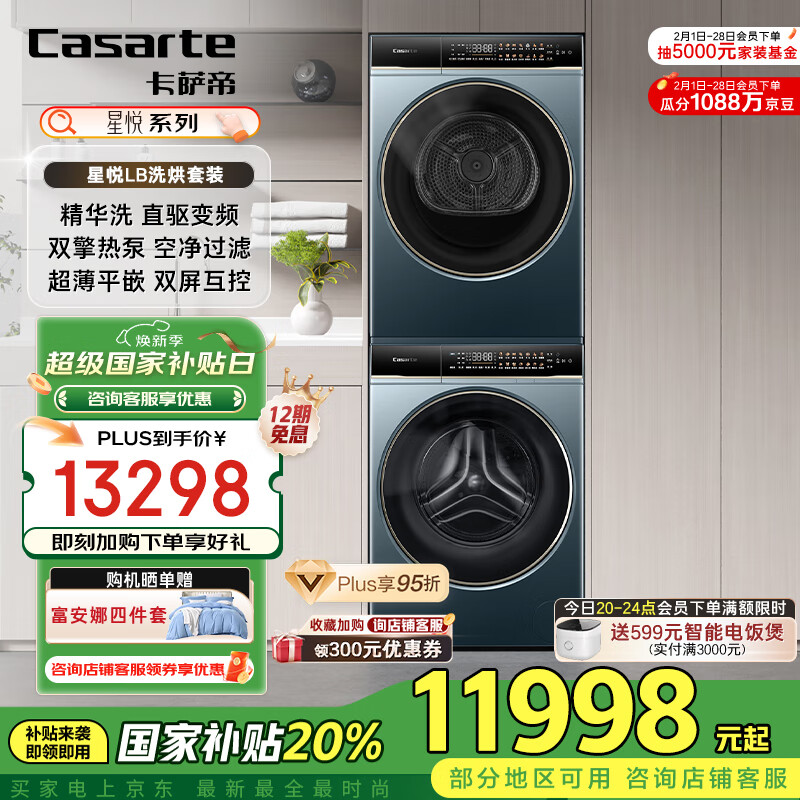 卡萨帝(Casarte)星悦LB洗烘套装 10KG直驱滚筒洗衣机+双擎热泵烘干机 精华洗以旧换新补贴20%10LDALB+10FALB价格:13998.00元!