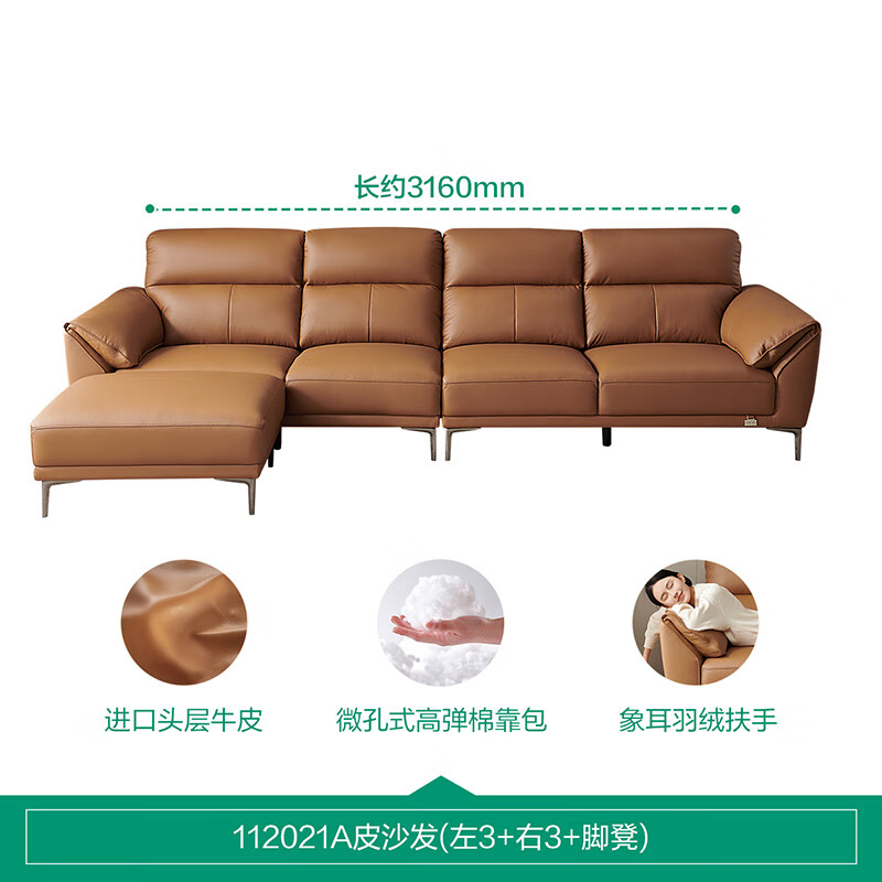 全友家居 现代简约头层牛皮直排大象耳朵大户型真皮艺沙发客厅112021价格:6427.14元!