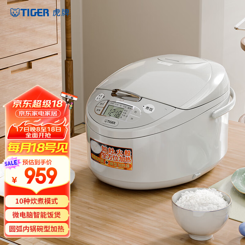 虎牌(TIGER)电饭煲微电脑电饭锅 4-10人份 5L JAX-C18C价格:959.00元!