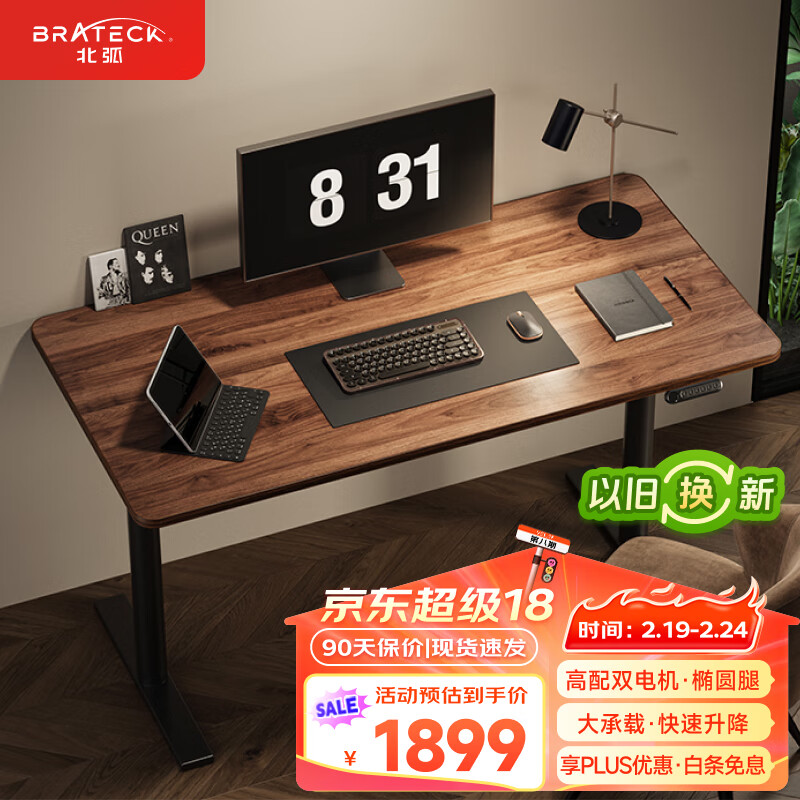 Brateck双电机电动升降电脑桌 北弧站立办公升降书桌 升降台 M1棕1.2米价格:3199.00元!