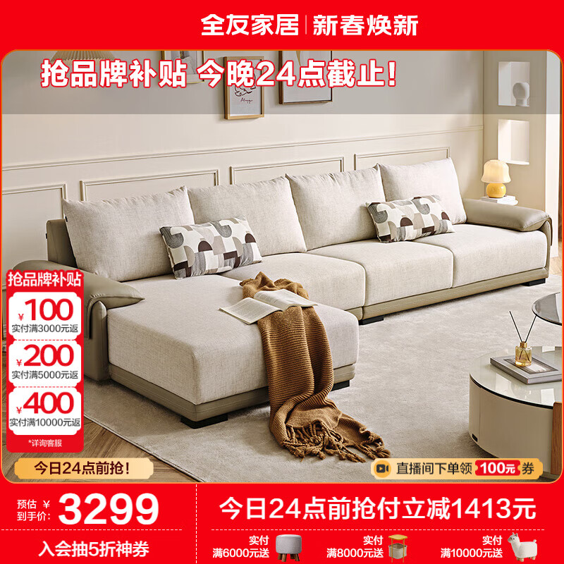 全友家居 布艺沙发客厅家用实木内架大户型简约风贵妃位L型沙发113002价格:4712.86元!