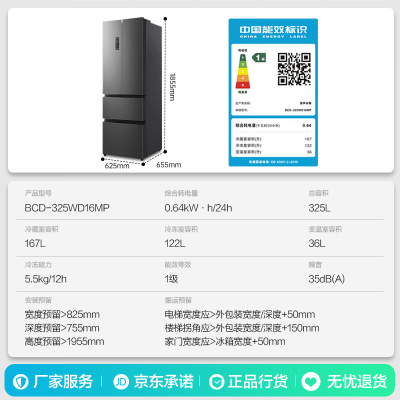 4、冰箱很重,送货师傅特别不容易,很辛苦。冰箱内置空间很大,插上电很快就制冷的,屏幕可以分别调节冷藏冷冻温度,非常满意。不亏我做了很多的功课,个人觉得冷冻有多分层好很多,这样可以区分不同的食物。