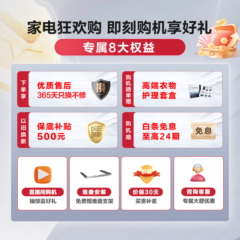 5、送货及时,安装快捷,洗衣机外观大气,双洗站省空间。洗衣机性能和扫地机器人性能使用后追评。