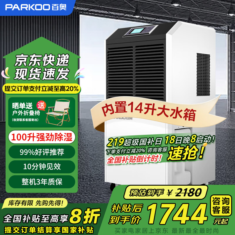 百奥(PARKOO)除湿机工业/抽湿机工业 100升大功率仓库地下室别墅除湿器 150-350平方工业除湿机 BA-1380AE价格:2180.00元!