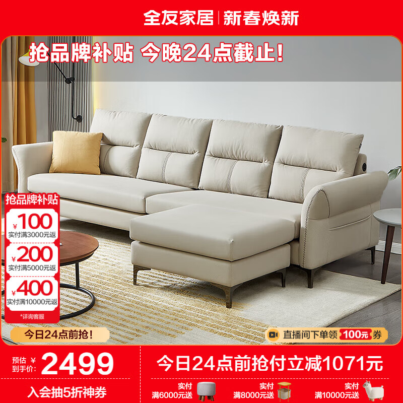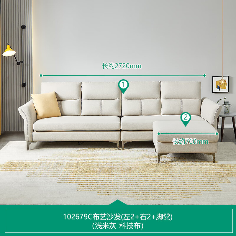 全友家居 现代简约功能科技布艺可拆洗储物小户型直排沙发客厅102679价格:3570.00元!