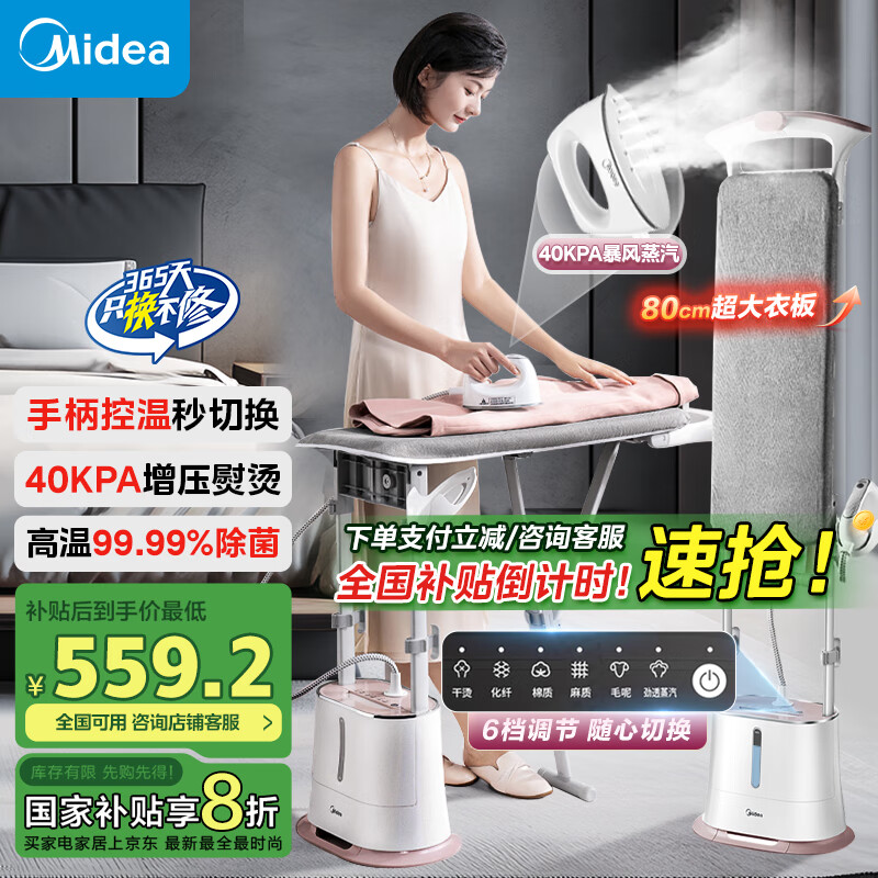 美的(Midea)【双核增压】挂烫机家用熨斗蒸汽挂烫机手持控温熨烫机加长熨板电熨斗生日礼物YGD20N2价格:699.00元!