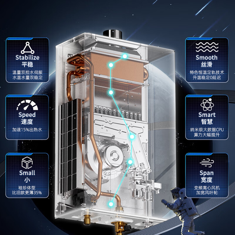 3、设备整体设计简约大气,控制界面简单易懂,出水温度平稳且调温精度较高,主机工作时噪音较低,整体感受理想,品牌过硬也没有过多的溢价,比较实惠且符合老百姓需求的一款经典产品,不错。