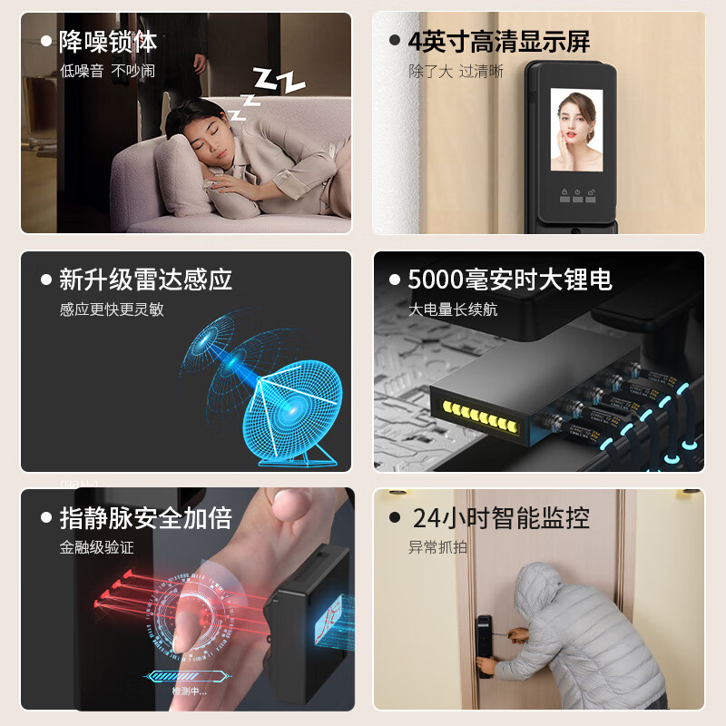 开锁方式:NFC,临时密码,密码,人脸识别,手机小程序,刷卡,钥匙,指静脉