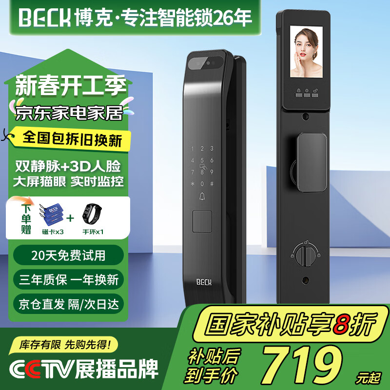 BECK博克智能门锁电子锁智能锁入户门密码锁指纹锁家用人脸识别猫眼V7PZ价格:899.00元!