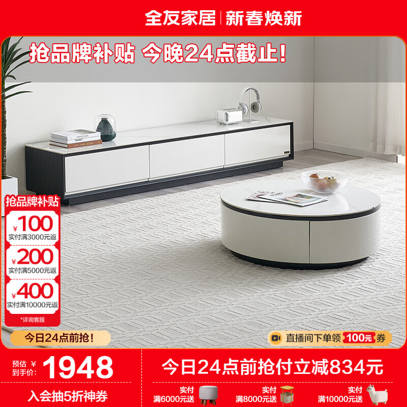 全友家居家用圆形茶几小户型岩板茶台现代简约客厅储物茶桌家具DW1055价格:2782.86元!