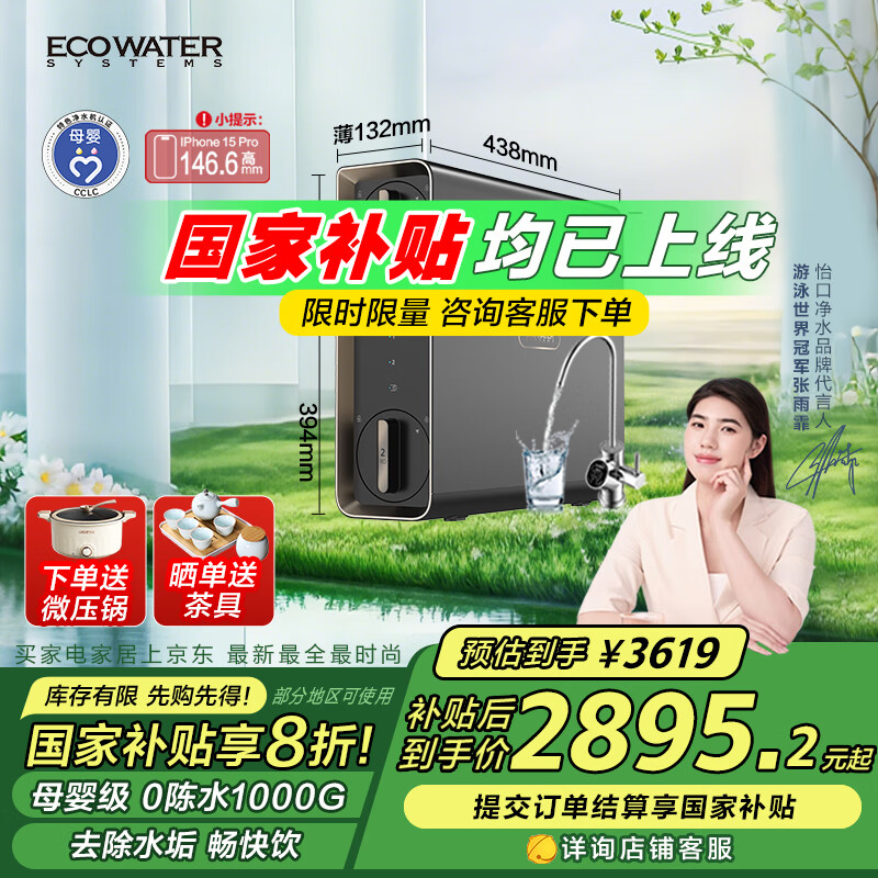 怡口净水(ECOWATER)净水器家用厨下式母婴直饮0陈水净饮机陶氏长效反渗透RO膜TDS智显1000G大流量水星Pro纤薄ERO185-2价格:4999.00元!
